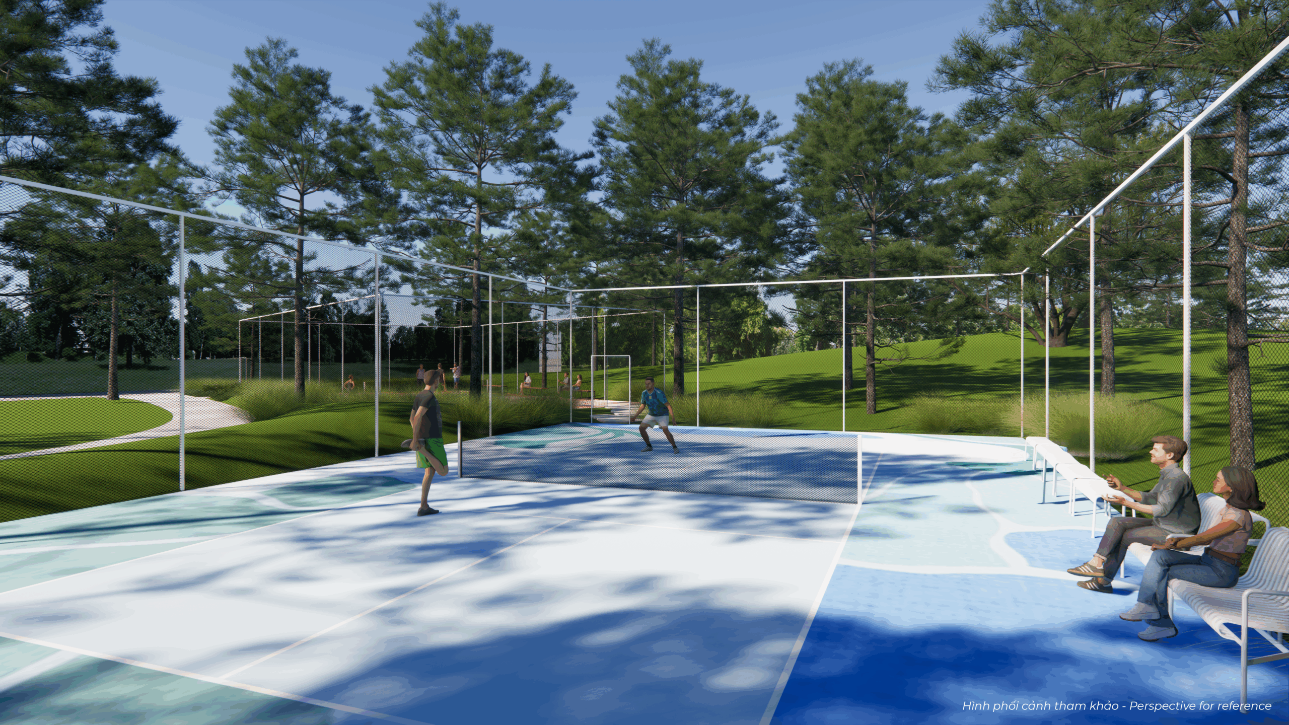 Sân bóng đá, sân tennis, khu tập gym ngoài trời. Đường chạy bộ ven hồ và các khu vực tập yoga. Trung tâm thương mại và mua sắm.